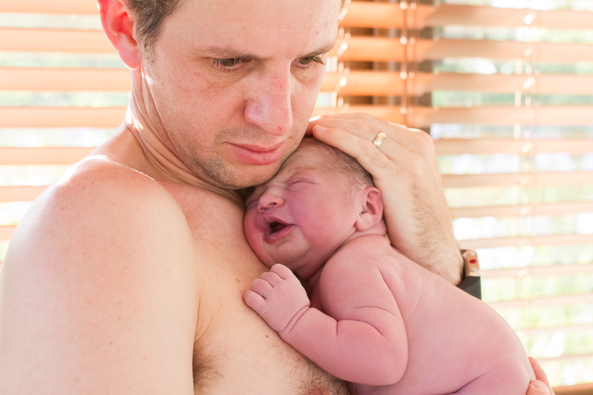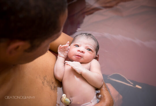 My birth plan was to be in the water should I not have an epidural. The bath was run and I climbed in. My waters broke with the first contraction. A big gush. I looked down – it was clear. I didn’t have an urge to push. I remember with Eva, that the urge was uncontrollable. It just happened. This time was different. I had to work so incredibly hard with those contractions to push her out. I had to push against pain. It was maybe 20 minutes. 4 or 5 contractions later and she was born.